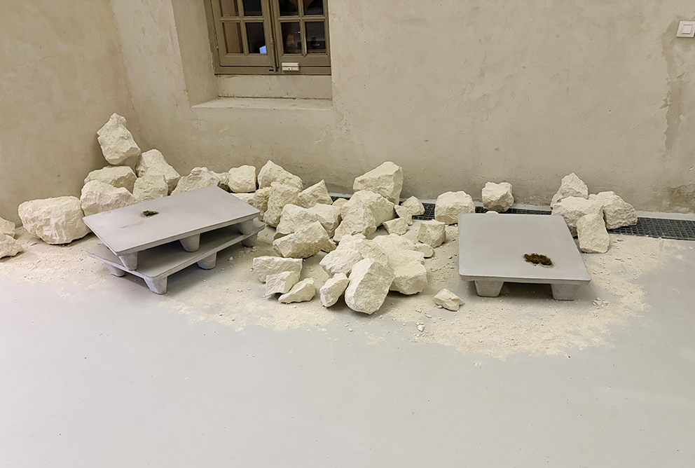 Module, 2023/2025, 14 x 41 x 61 cm, bryophytes 14 x 41 x 61 cm, bryophytes, pierres de calcaire ©Bernard Calet
