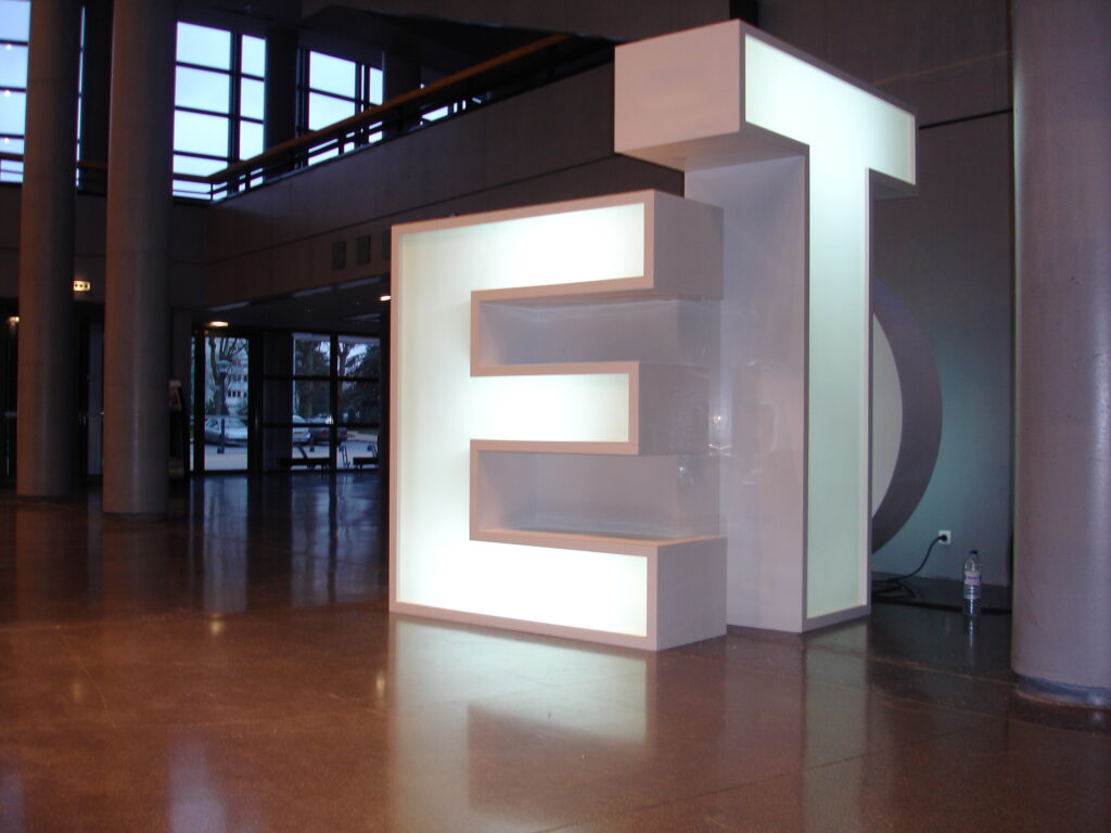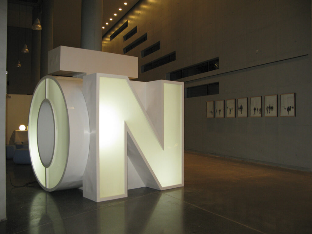 One to one, 2009, quatre lettres assemblées : PVC blanc satiné, PVC diffusant, tubes fluorescents, 265 x 240 x 240 cm ©Bernard Calet